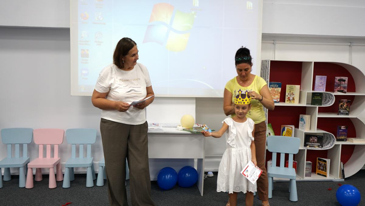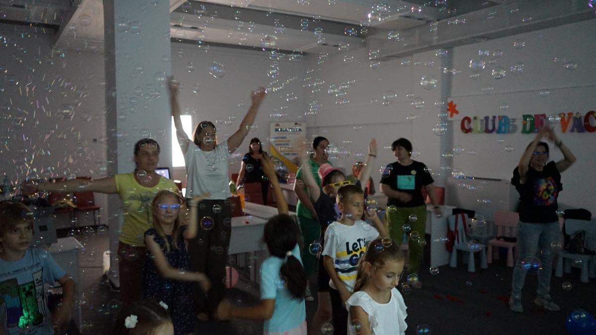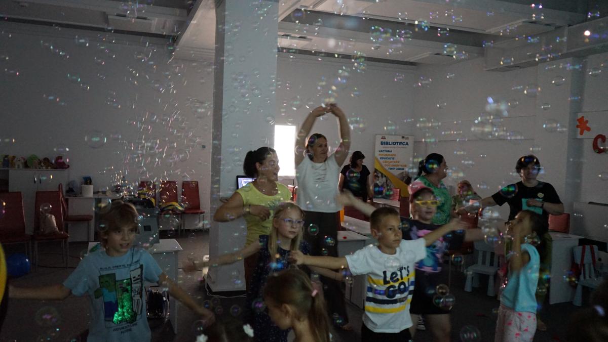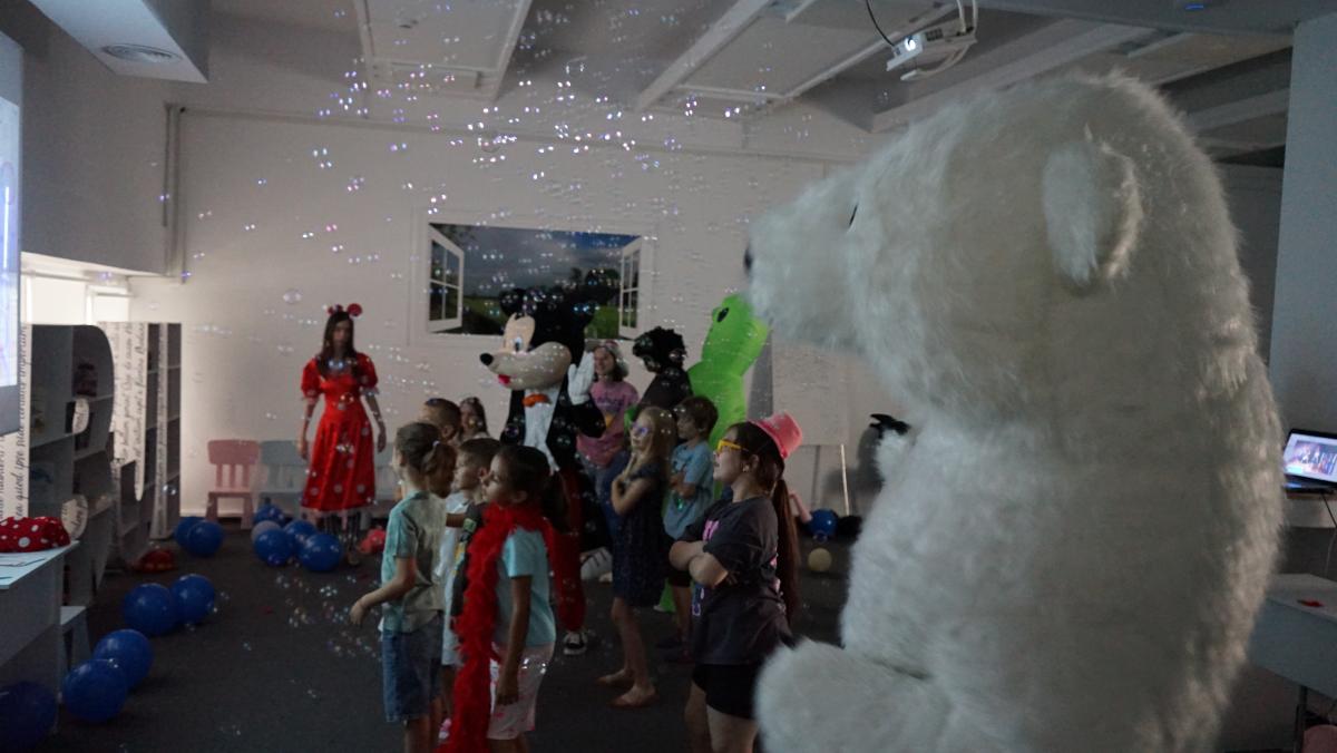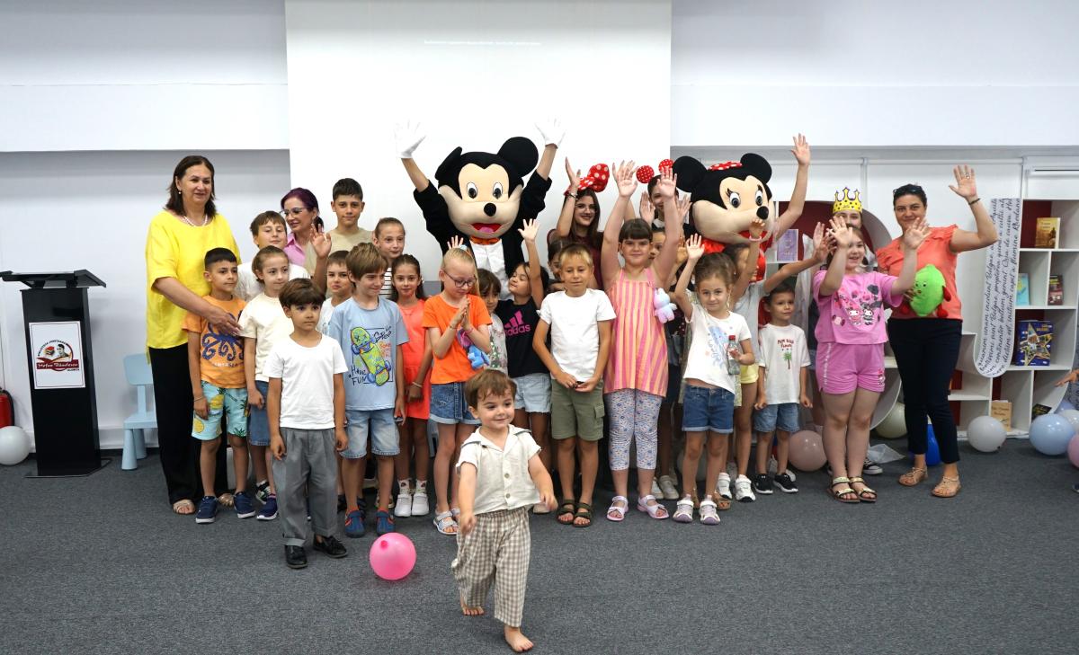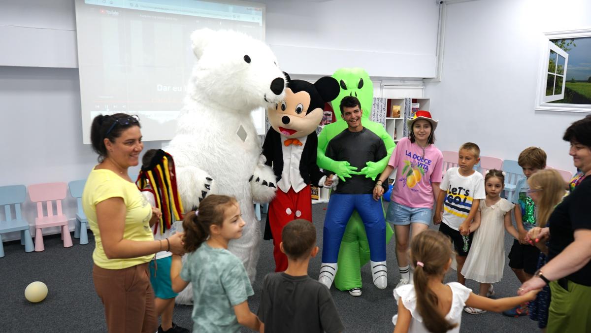 Au petrecut alături de copii, voluntari și bibliotecari o lună de zile minunată cu multă distracție (dansuri, cântece, baloane și multe jocuri). Bucuria cea mai mare a copiilor au fost bineînțeles mascotele – ursul alb gigant, Mickey & Minnie Mouse, mașina de baloane de săpun și alte accesorii de petrecere.
