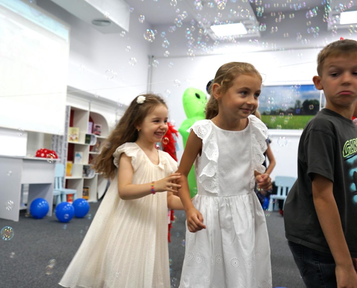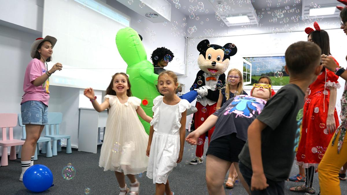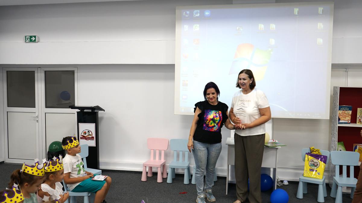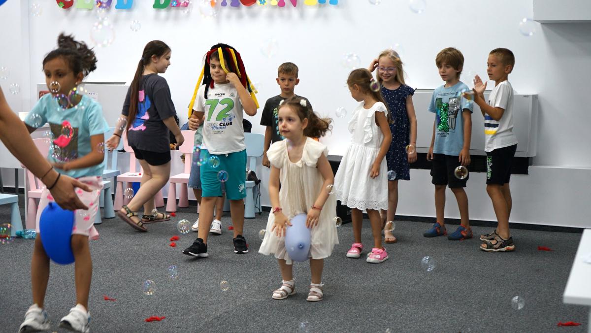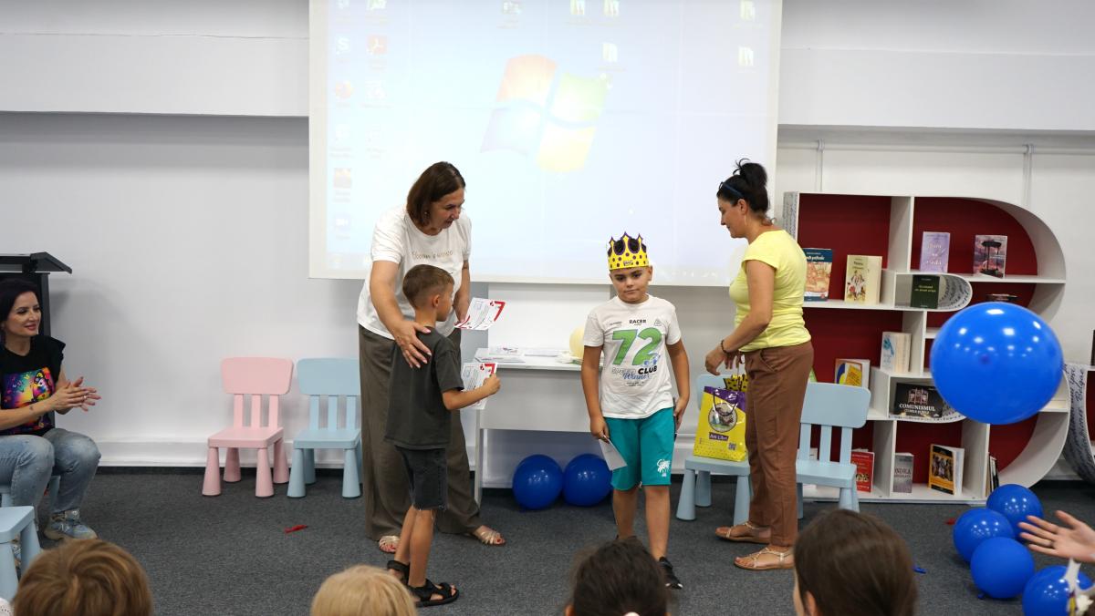 Au petrecut alături de copii, voluntari și bibliotecari o lună de zile minunată cu multă distracție (dansuri, cântece, baloane și multe jocuri). Bucuria cea mai mare a copiilor au fost bineînțeles mascotele – ursul alb gigant, Mickey & Minnie Mouse, mașina de baloane de săpun și alte accesorii de petrecere.