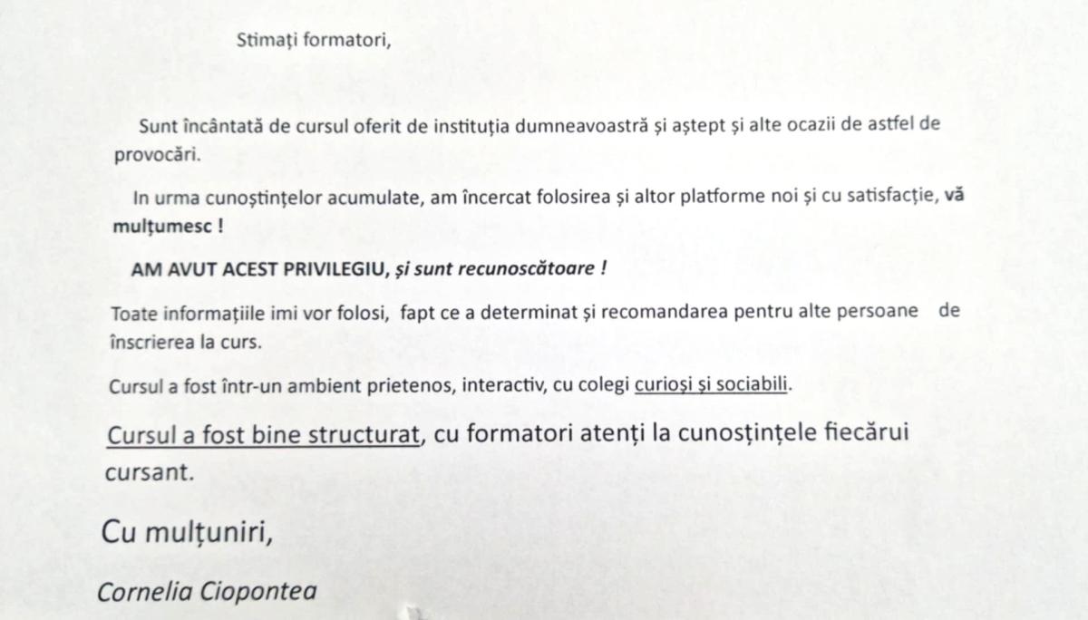 Felicitări tuturor cursanților pentru implicare și rezultatele obținute!